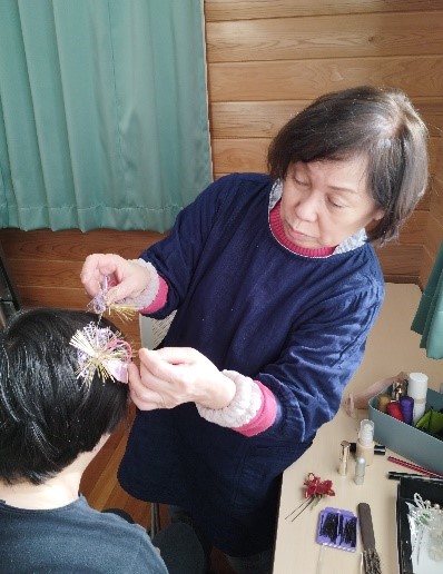 世話人さんのご協力と着付け教室のボランティアさんをお迎えして