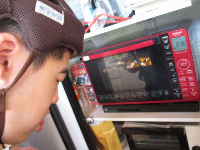 余熱したオーブンで焼いています。「まだかな…」と様子を見ています