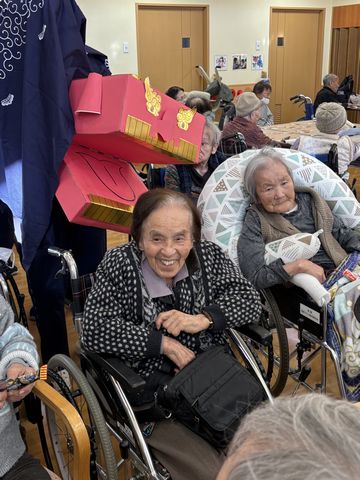正月ならではのカルタ、福笑いとお菓子釣りで遊びました。
