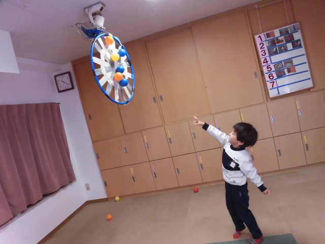 蜘蛛の巣張りのフラフープに向かって上手に投げることができたね♪