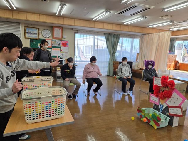 ハートの代わりにボールをかごの中へ投げ入れるゲームで、皆さん楽しみながらチャレンジしていました。