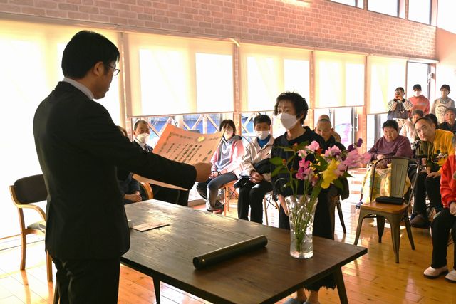 12月下旬、すぎのこ会法人内で、厚生労働大臣表彰 社会福祉事業従事功労者のすぎのこ職員、鈴木春美主事の多年にわたる業務に精励し、その功績を称え表彰状授与式を行いました。
