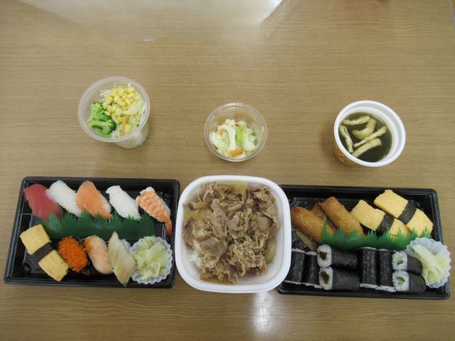 牛丼かお寿司を選んで、みんなで美味しくいただきました🍣