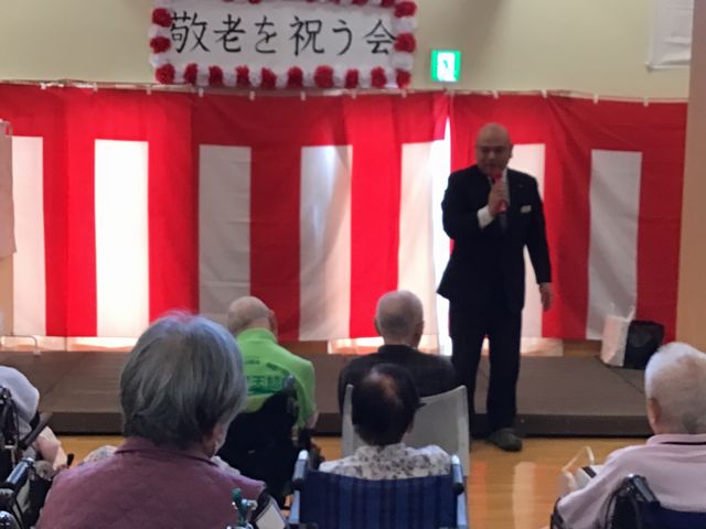 施設長より長寿の願いを込めて敬老のお祝いの挨拶です。