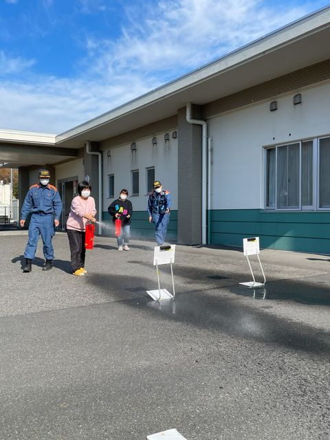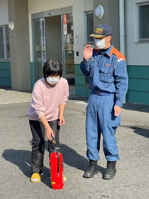 今回は消防署員の方々に、来所いただき、通報訓練・避難訓練・消火訓練まで、立ち合いいただき、ご指導いただきました。