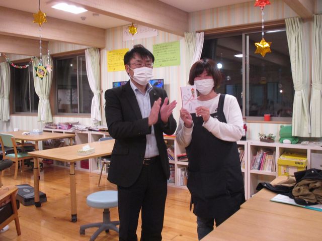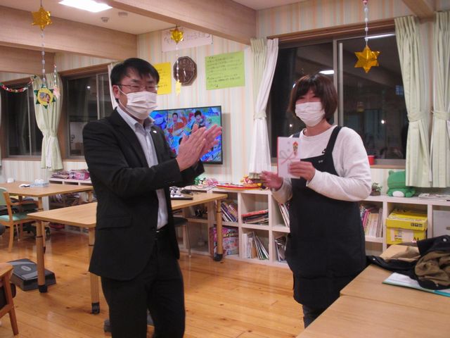 夕方の職員打ち合わせ終了後、ひと息ついたタイミングでのサプライズ!