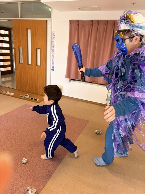 怖かったけど「鬼は外、福は内!!」と言って豆を一生懸命投げる事が出来ました!(^^)!