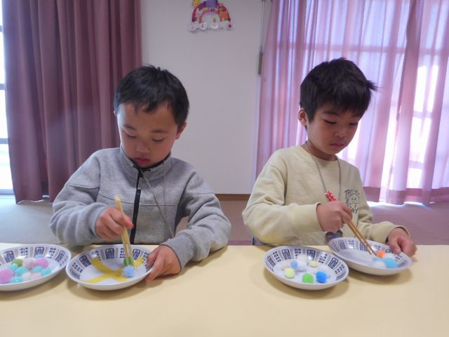 箸を使ってお皿に移していくゲーム( ^ω^ )♪