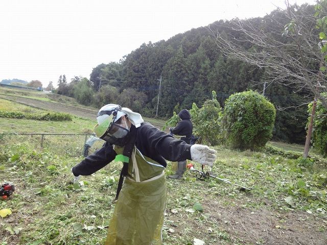 職員も草刈り機初体験!次第にぎこちなさもなくなり慣れた手つきで出来るようになりました!