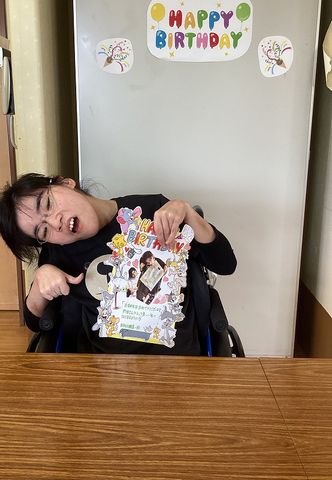 「HappyBirthday」の歌を歌った後、誕生カードを