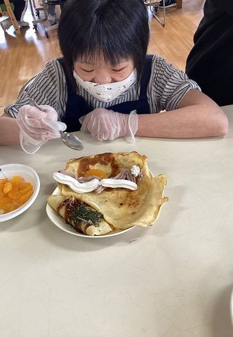 今回は調理実習でとん平焼きとミニクレープを作りました。(^▽^)/