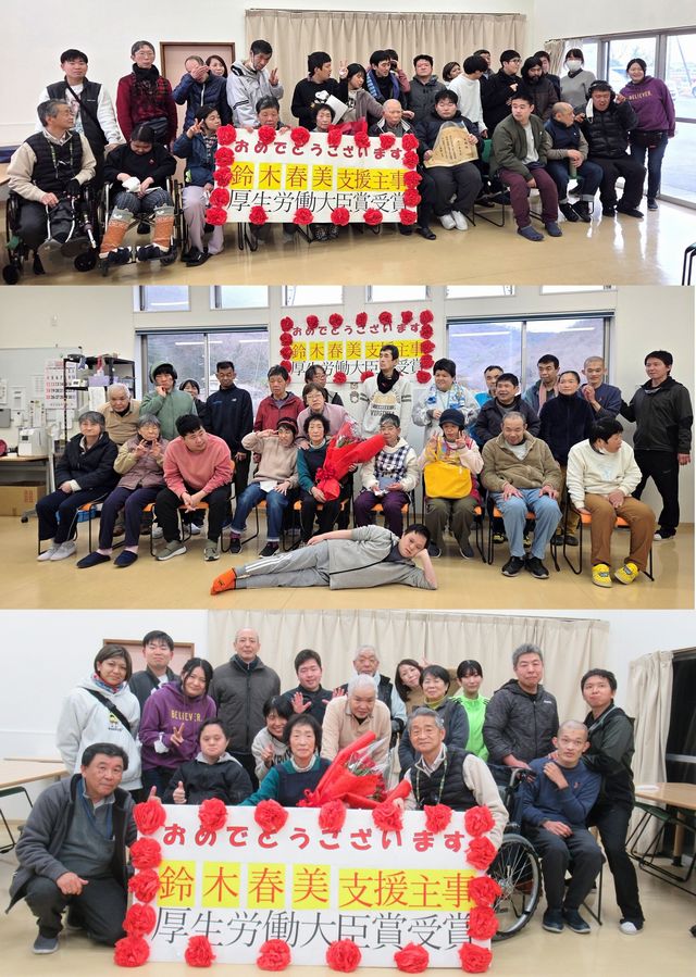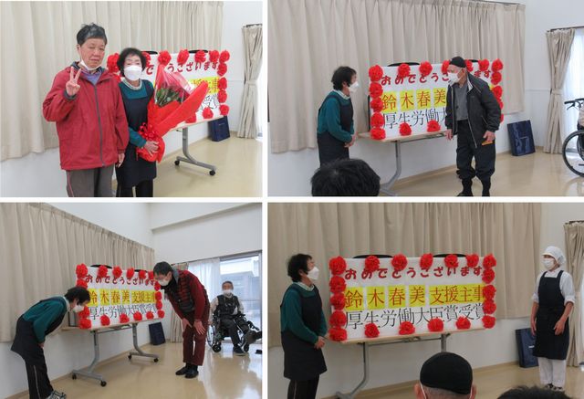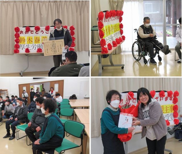 1月初旬、昨年末、厚生労働大臣表彰された、鈴木春美主事のお祝いを利用者・職員と行いました。