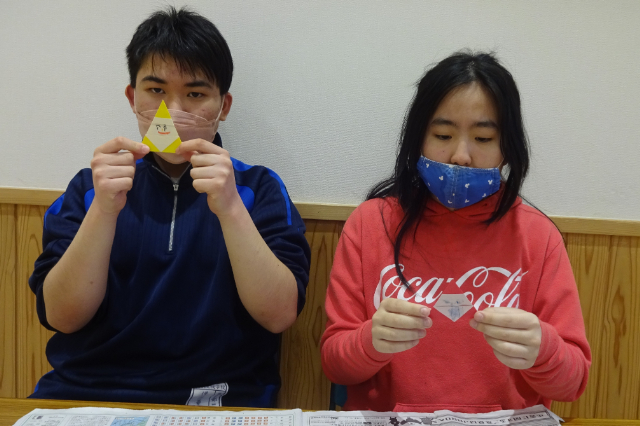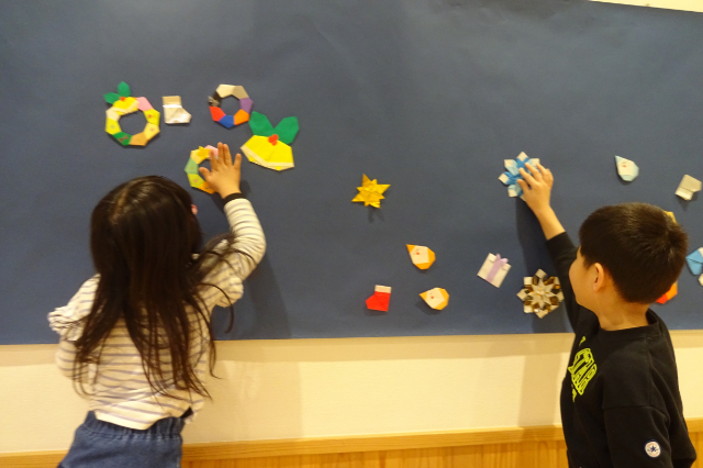 折り紙でサンタさんを折って、かわいい顔を描いたり…🎅