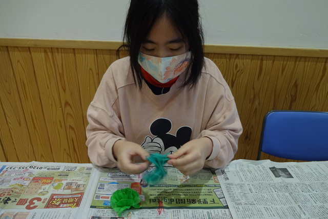 ふわっと広がるお花を一枚ずつ丁寧に作っていくと