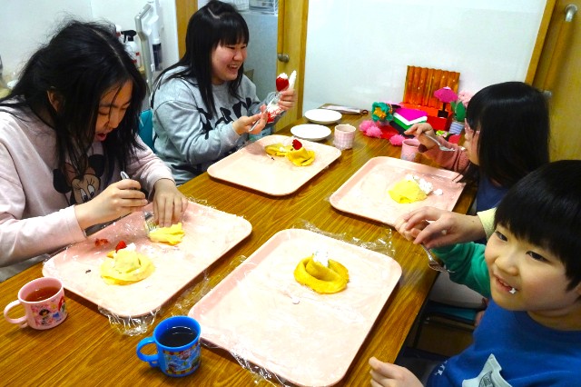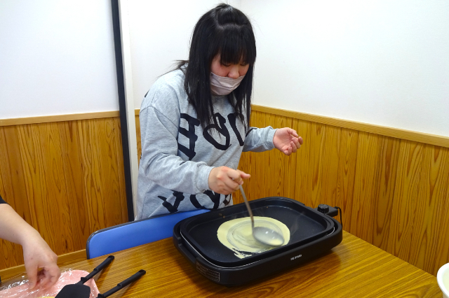 ということで、調理実習でおひなさまのクレープを作りました!!