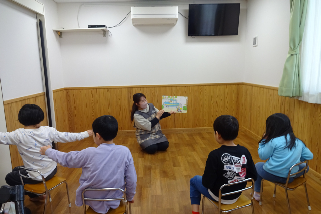 名前を呼ばれて元気にお返事したあとは…読み聞かせの時間です📖