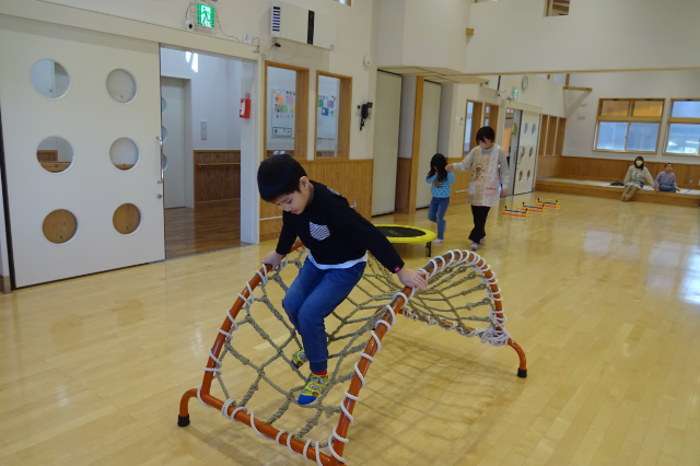 のあの杜の集団療育では他にも、コアキッズ体操やヨガ、ストレッチ、平均台やトランポリンで身体を動かしたり、音楽に合わせてダンスをしたり…。