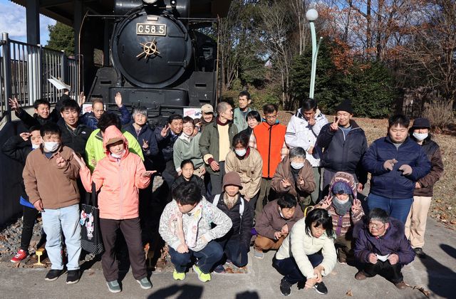 壬生のわんぱく公園の南口にあるSL機関車とハイウェーイパーク(道の駅みぶ)へ…、あおぞらメンバーです。
